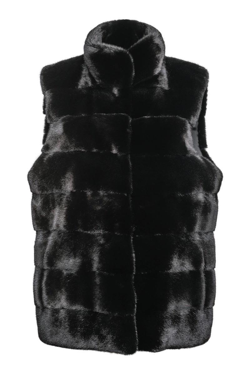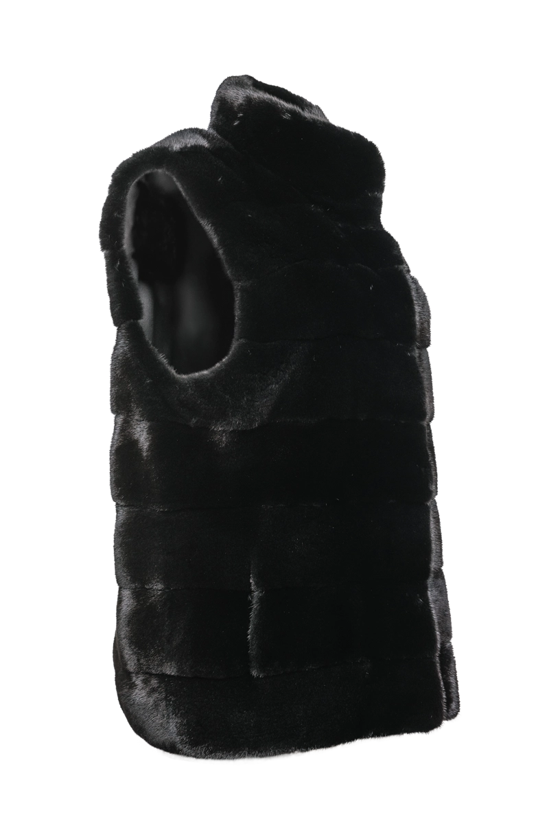 Blackglama Horizontal Mink Fur Vest - Stand-Up Collar
