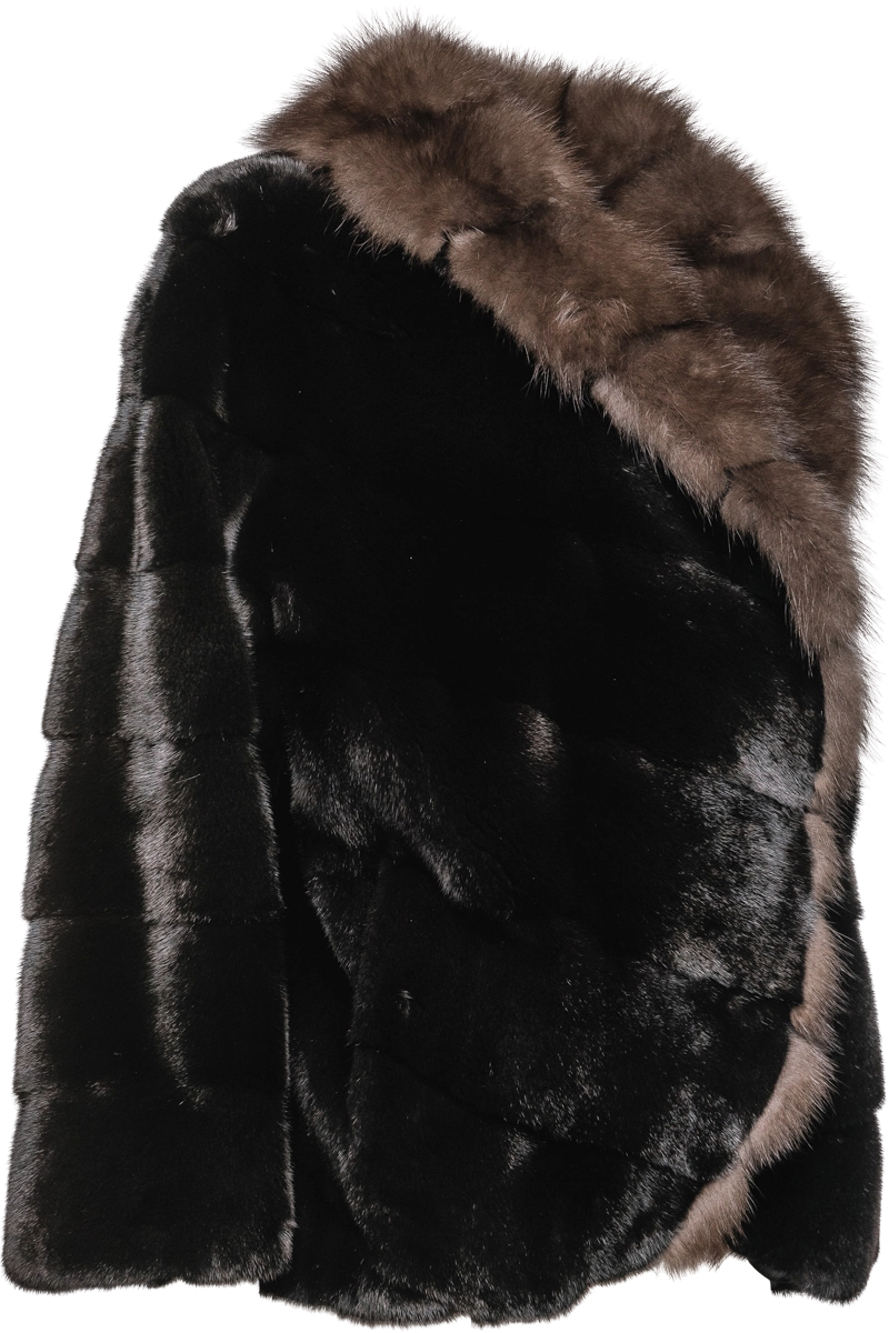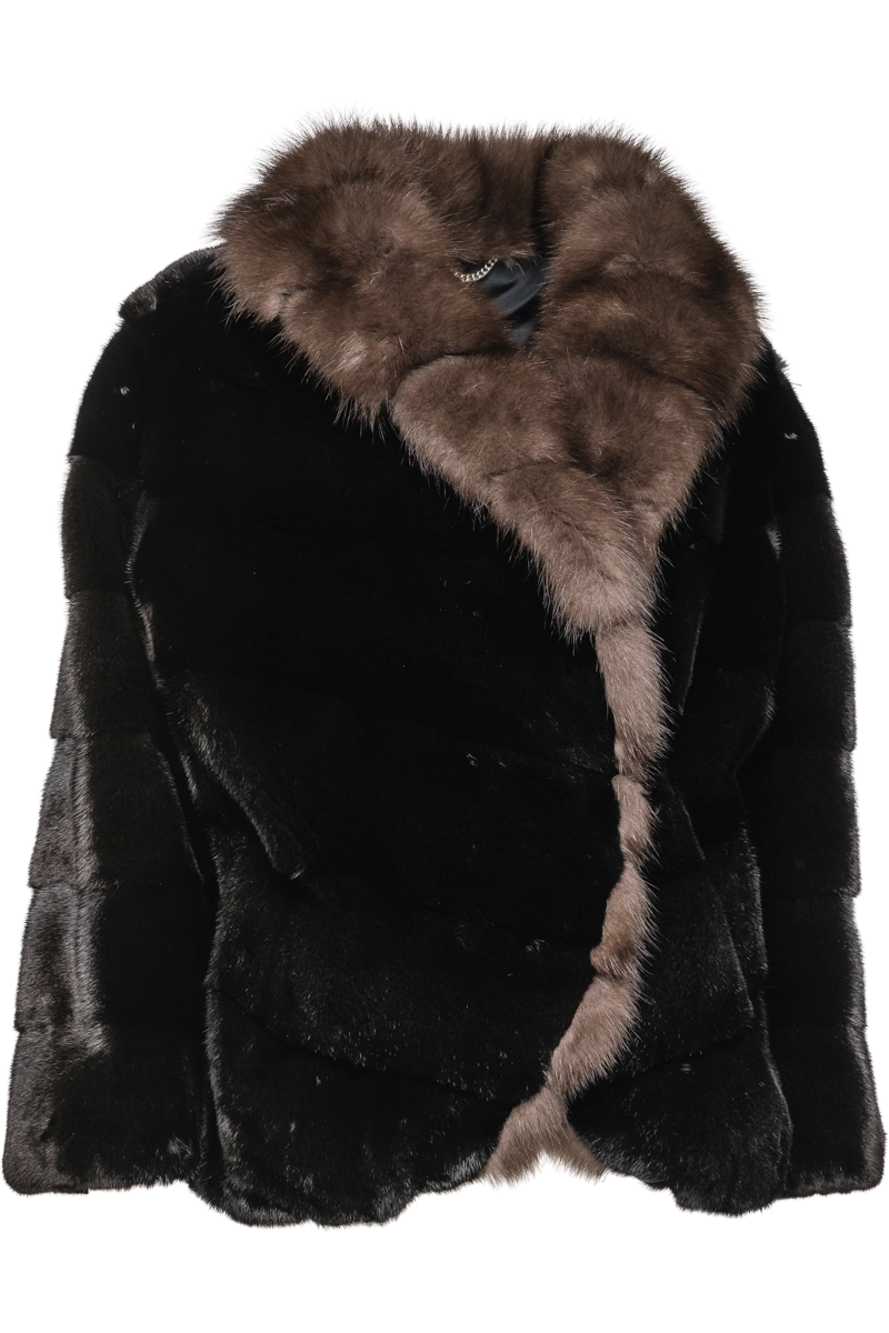 Chevron Blackglama Mink Fur Jacket - Stone Marten Trim