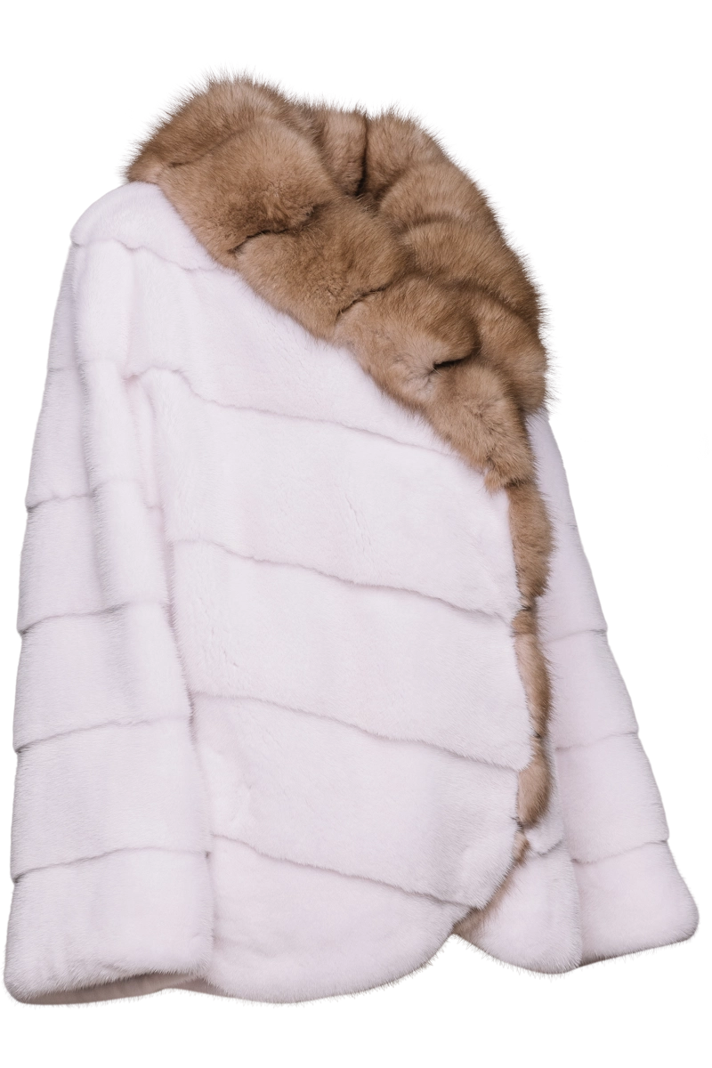 Chevron Snow White Mink Fur Jacket - Stone Marten Trim