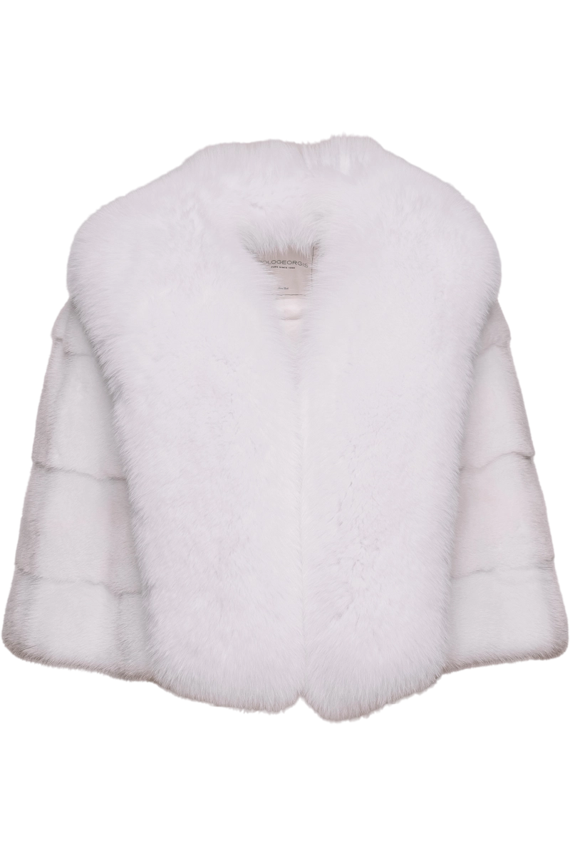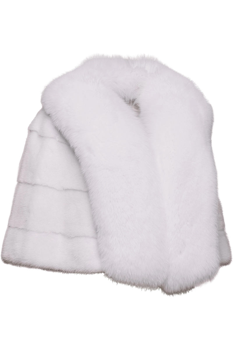 White POLOGEORGIS Elegant Horizontal White Fox & Mink Fur Cape PRODUCT FRONT VIEW